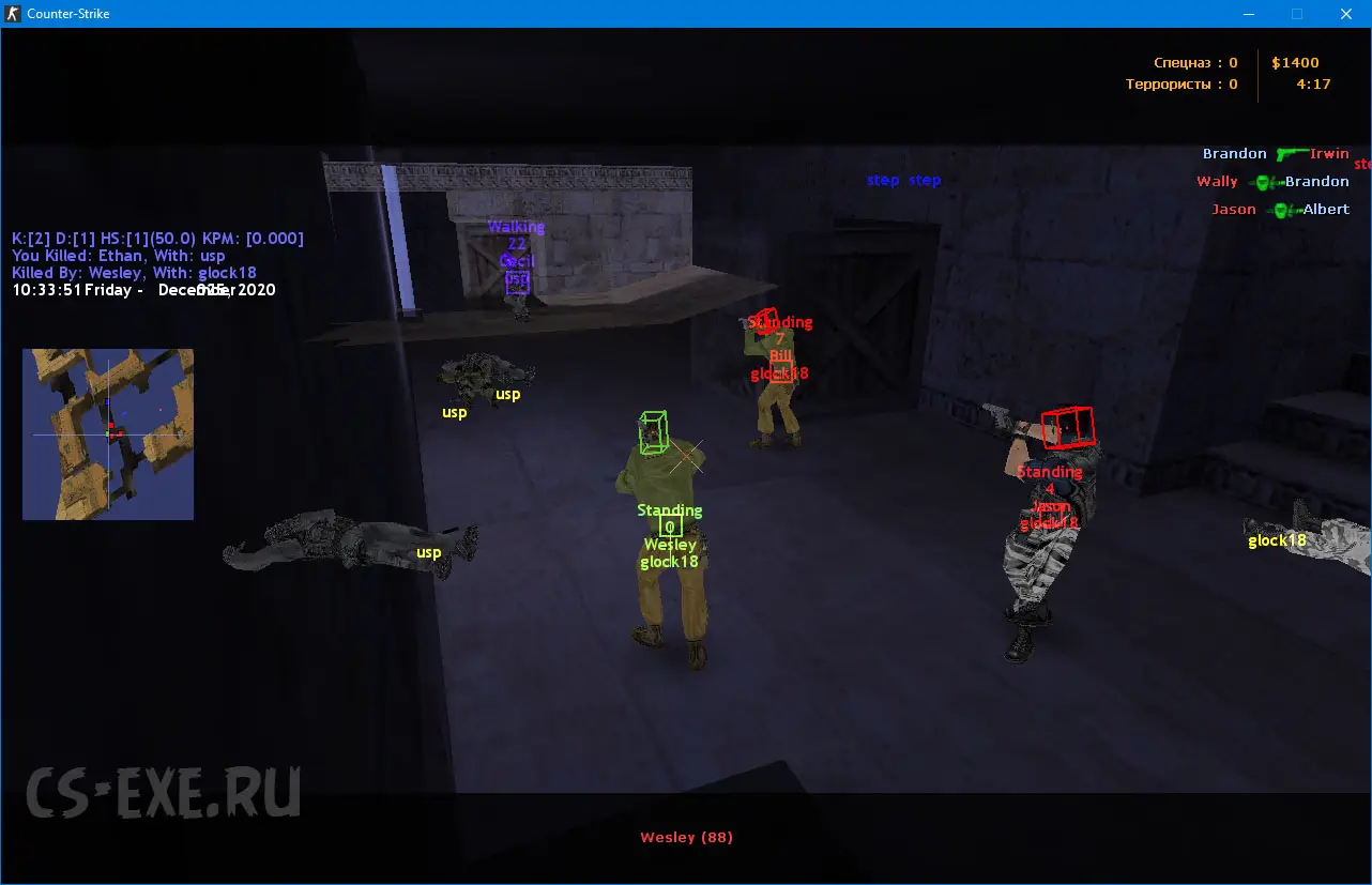 ESP - Функция показывает полную информацию о противниках, их оружии, здоровье (да и об участниках своей команды тоже).