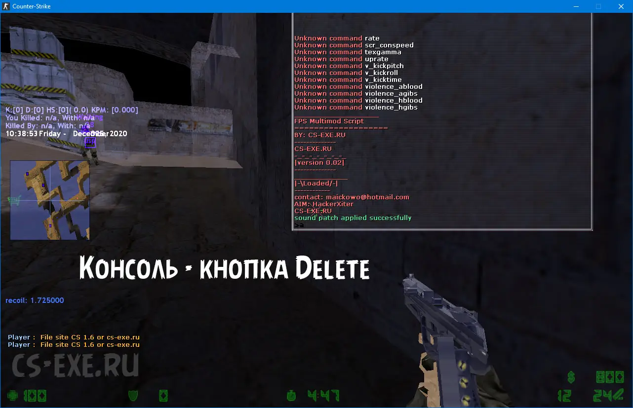Кнопка "Delete" - нажатие откроет главную консоль чита.