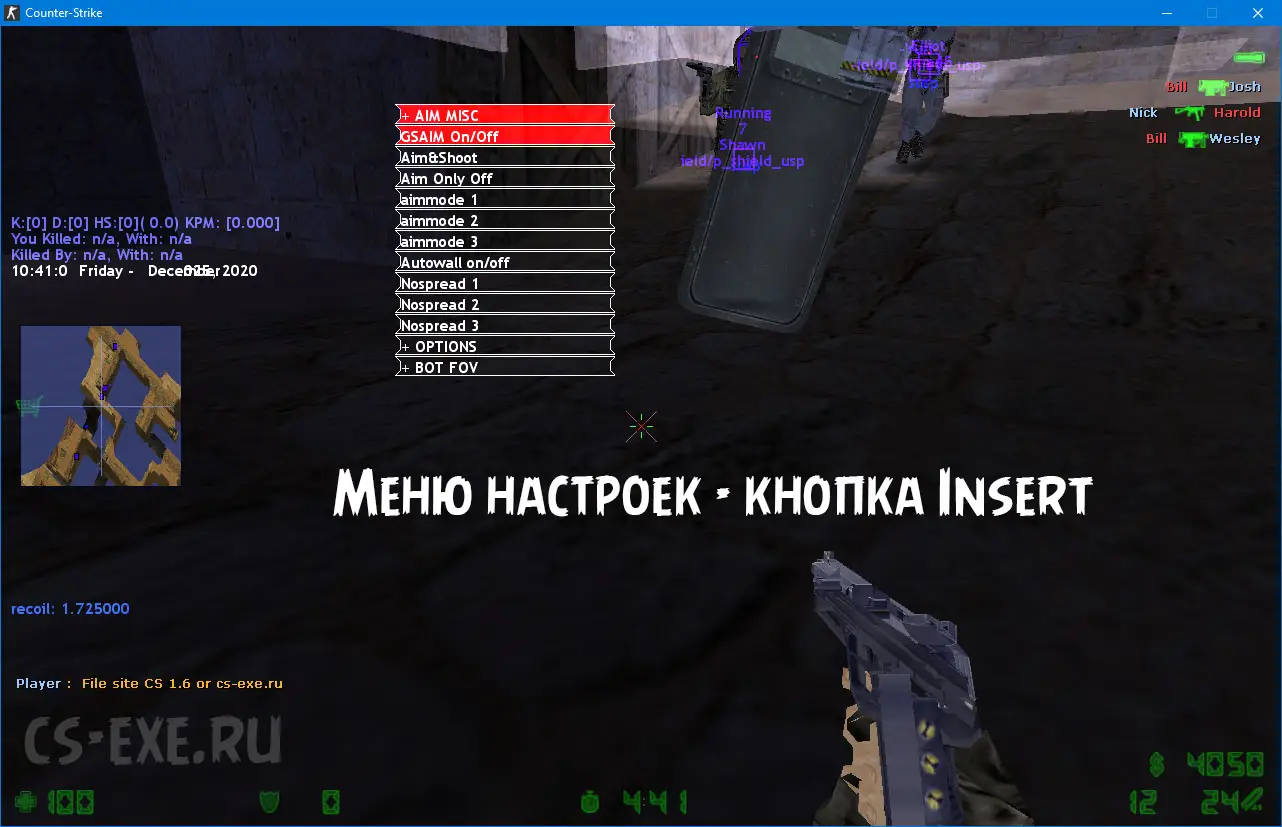 Версия игры: Чит протестирован и корректно работает на Сounter-Strike 1.6 с версией патча v23.Функции чита: