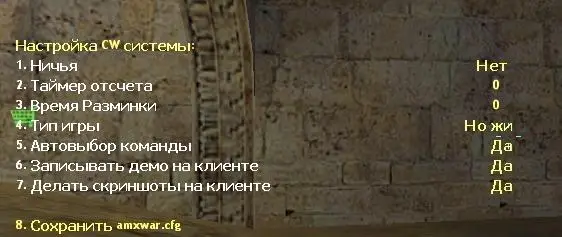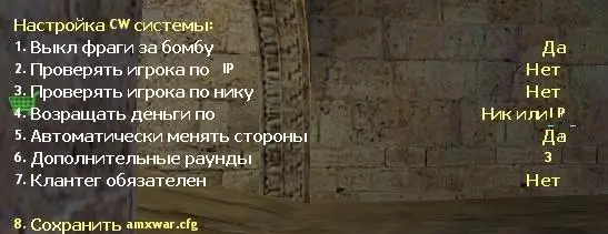 Команды AMX War System 2.7awmenu — основное меню (настройки, управление матчем и так далее).