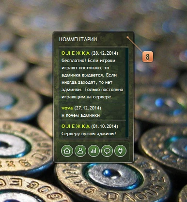 Четвертый скриншот показывает комментарии, опубликованные пользователями на странице сервера; доступ к ним осуществляется через кнопку (4) в меню навигации.