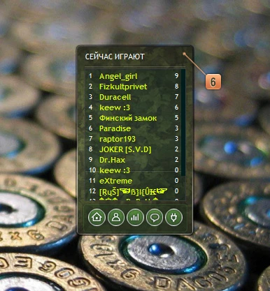 Второй скриншот иллюстрирует список пользователей, в данный момент находящихся на сервере. Эта информация активируется нажатием на кнопку (2) в навигационном меню.