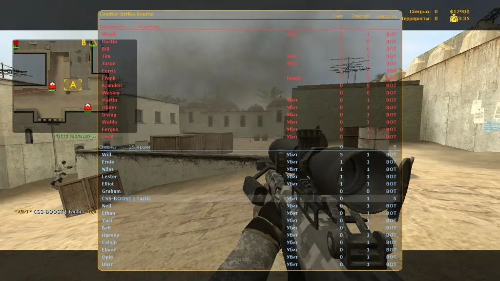 Умные боты могут быть задействованы как на старте матча, так и непосредственно во время игры, путем ввода консольных команд. Доступно подключение к любому из предложенных серверов. Серверы для CSS v34 возможно добавить в список предпочтений для удобного последующего доступа. Кроме того, есть возможность создавать собственные игры против интеллектуальных ботов, которые демонстрируют высокий уровень реакции и могут бросить вызов даже опытным игрокам.